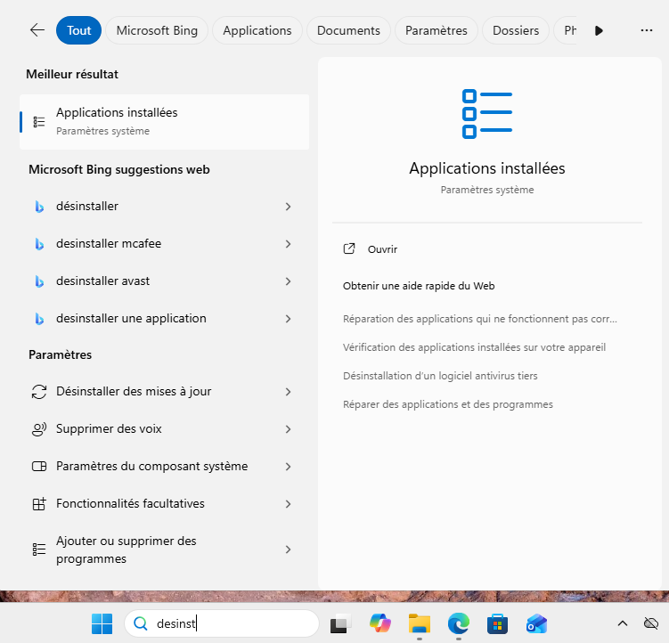 Dès à présent, vous pouvez désinstaller n'importe quels logiciels ou applications que vous ne souhaitez plus posséder sur votre Windows 11, que ce soit depuis le panneau de configuration ou depuis les paramètres Windows.