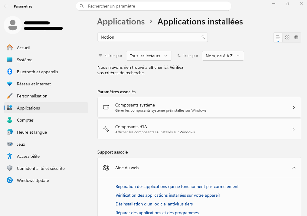 Pour vous montrer comment désinstaller un programme sur Windows 11, je vais prendre l'exemple de l'application Notion.