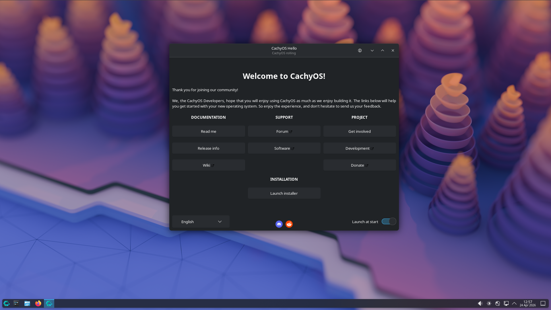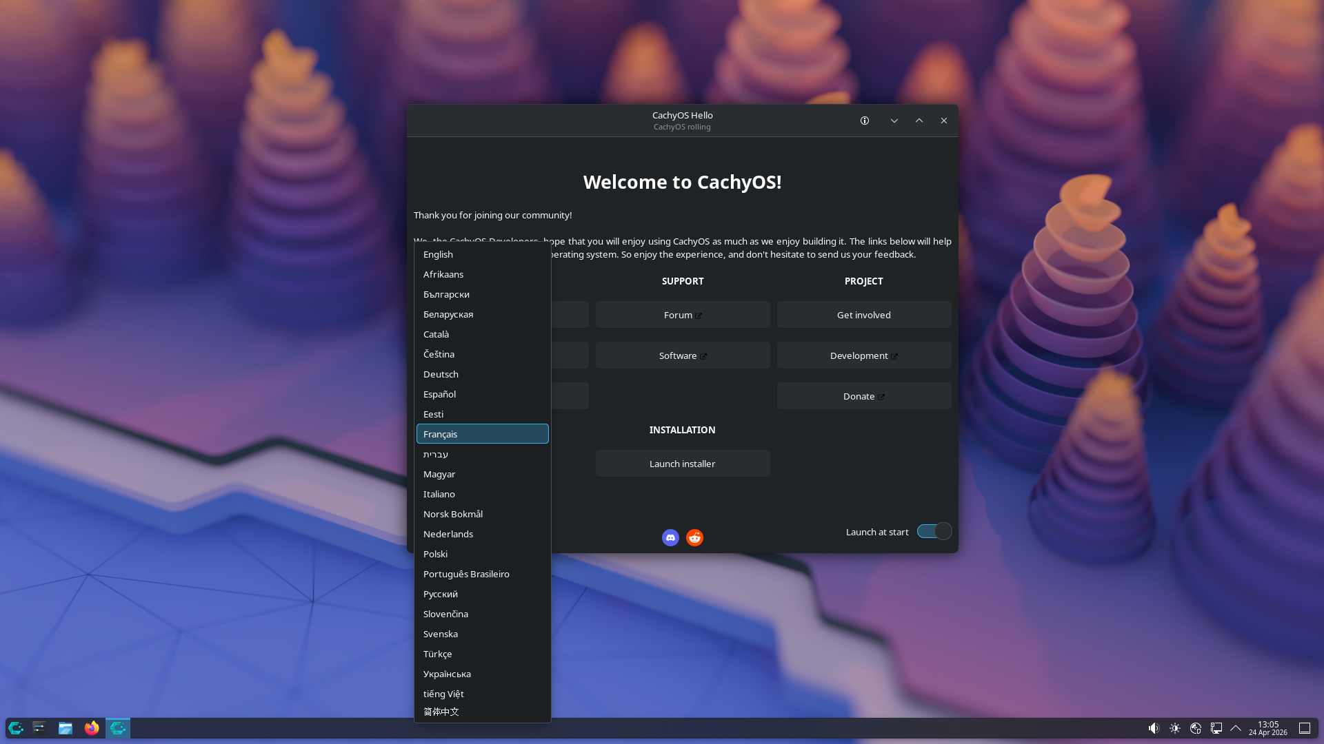 Une fois que vous avez démarré sur l'ISO, vous arrivez alors sur la page d'accueil de CachyOS.