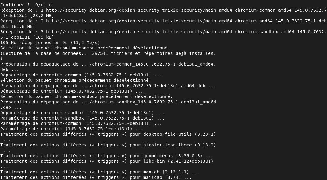 chromiumSi jamais vous voulez mettre à jour tout les paquets installés, exécutez la commande :