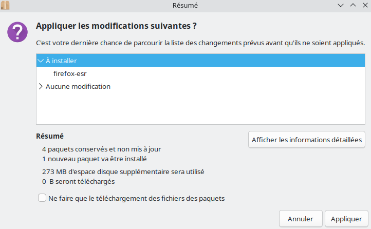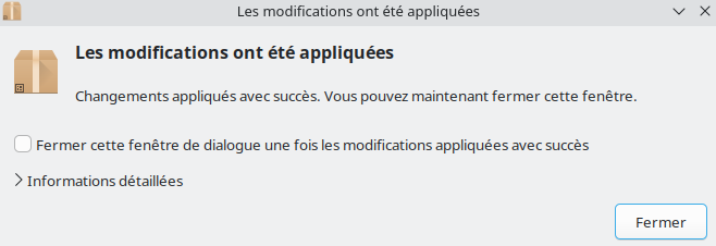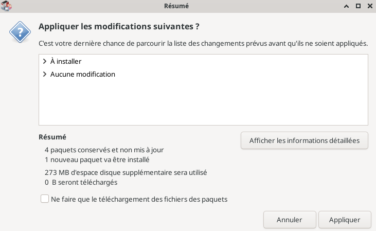 Puis cliquez de nouveau sur "Appliquer" afin d'installer le paquet :