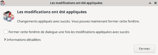 Puis un message vous indiquera que les modifications ont bien été faites.