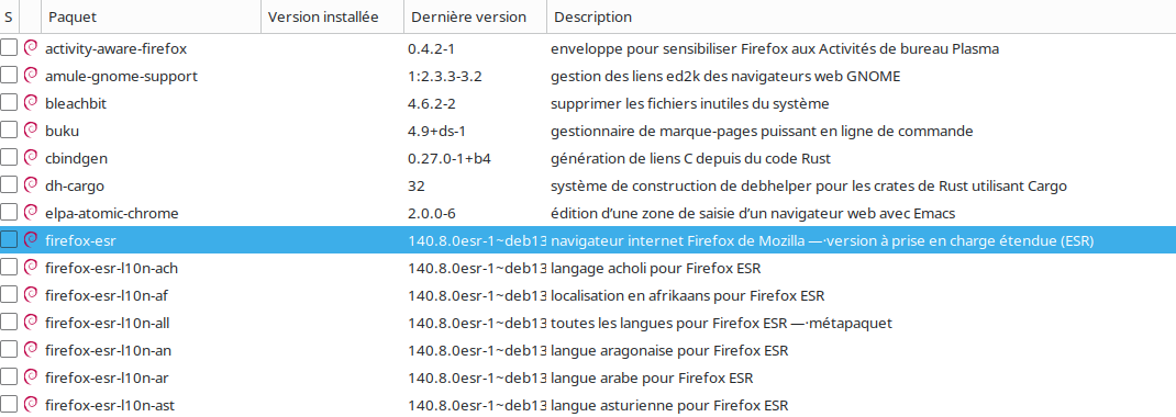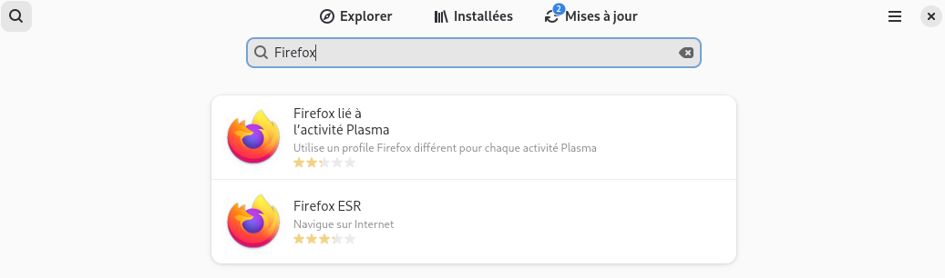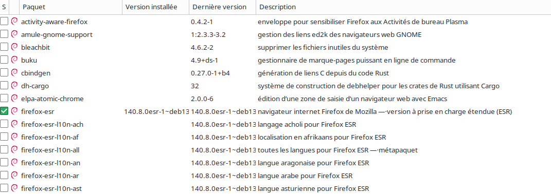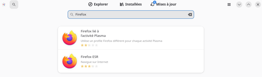 Sur l'environnement de bureau KDE Plasma, il existe plusieurs gestionnaires de paquets logiciels tels que "Discover" comme étant le gestionnaire de paquet par défaut de KDE, ou encore "Synaptic" et "Logiciels".