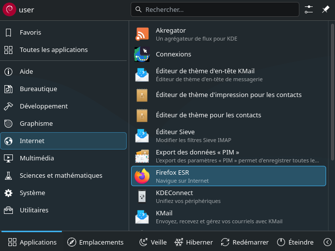 Ouvrez le centre de logiciels depuis le menu KDE sur la barre des tâches > cliquez sur "Système" > puis cliquez sur "Discover" :