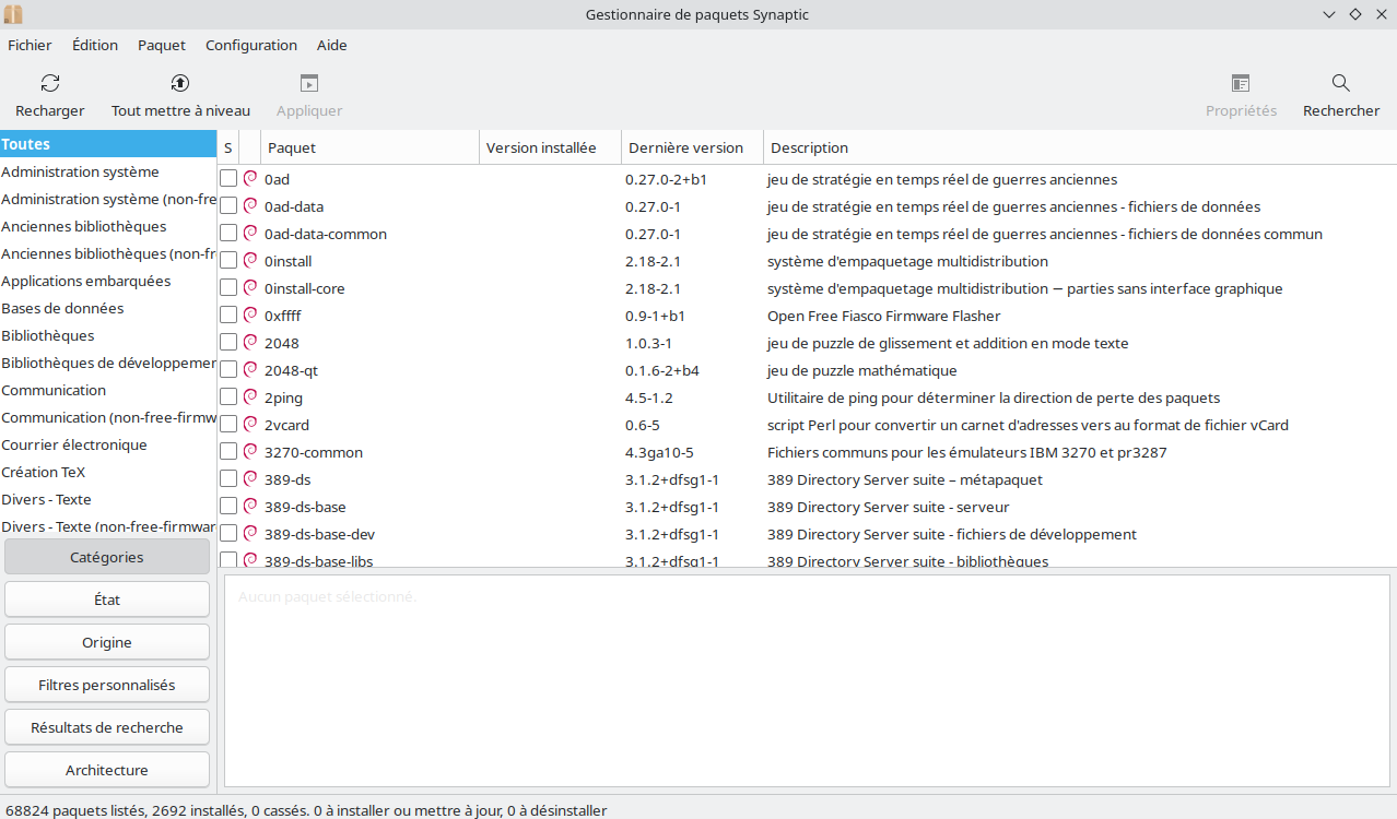 Sur l'environnement de bureau Xfce, ouvrez le centre d'applications Synaptic.