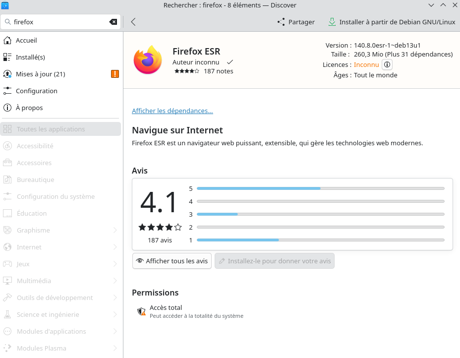 Maintenant, nous allons voir comment installer un logiciel récupéré depuis un navigateur web, car oui, pour certains logiciels il est possible de le faire. Il existe notamment le format deb.