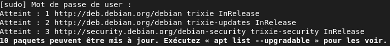 Dans un premier temps, nous allons mettre à jour la liste locale des paquets disponibles, si cela n'est pas encore fait :