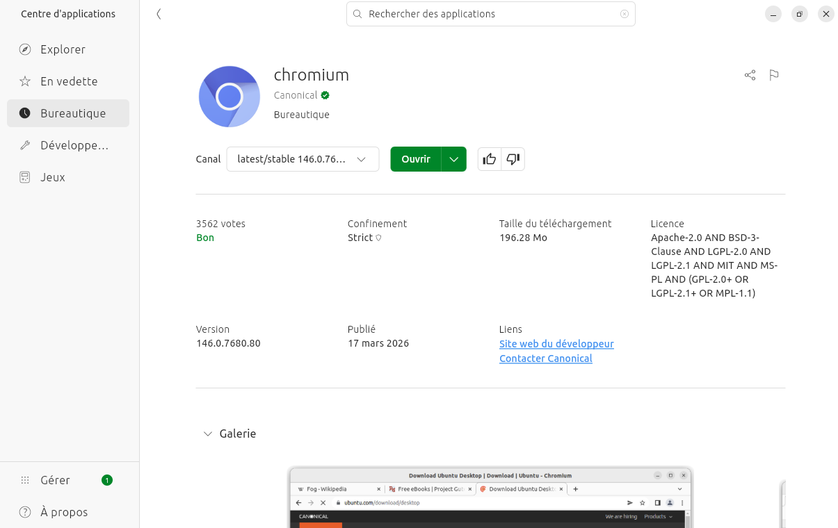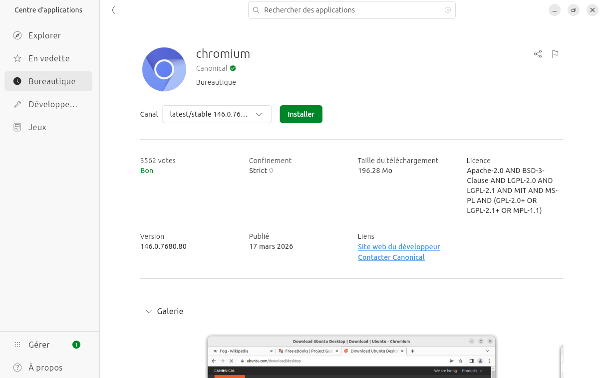 Cela va vous ouvrir le centre d'application "Logiciels", vous n'aurez plus qu'à cliquer sur "Installer" :