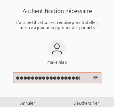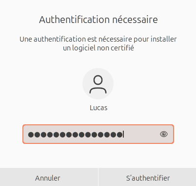 sudo apt install chromium -yUne demande d'authentification sera demandée, il faudra entrer le mot de passe de l'utilisateur de la session en cours :