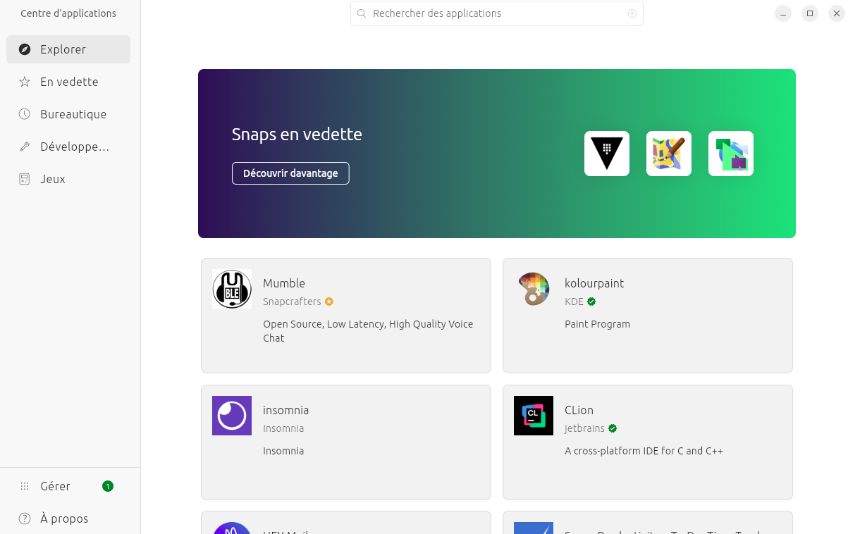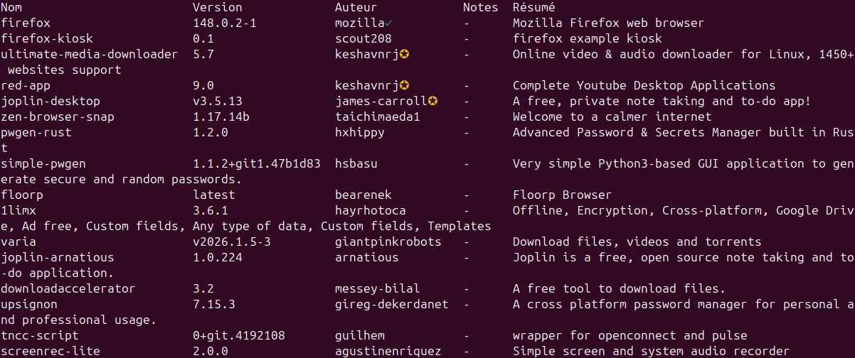 En amont d'installer un logiciel au format snap, on peut déjà faire une recherche spécifique afin de savoir si le paquet est bel et bien disponible avec la commande snap find <nom_du_paquet> :
