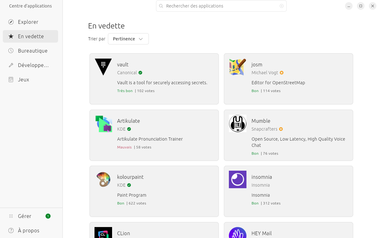 Pour ce qui est du paquet deb, ce dernier est un format de fichier de paquets logiciels issu de la distribution Debian. Comme pour snap, le format apt est déjà préinstallé sur la distribution.