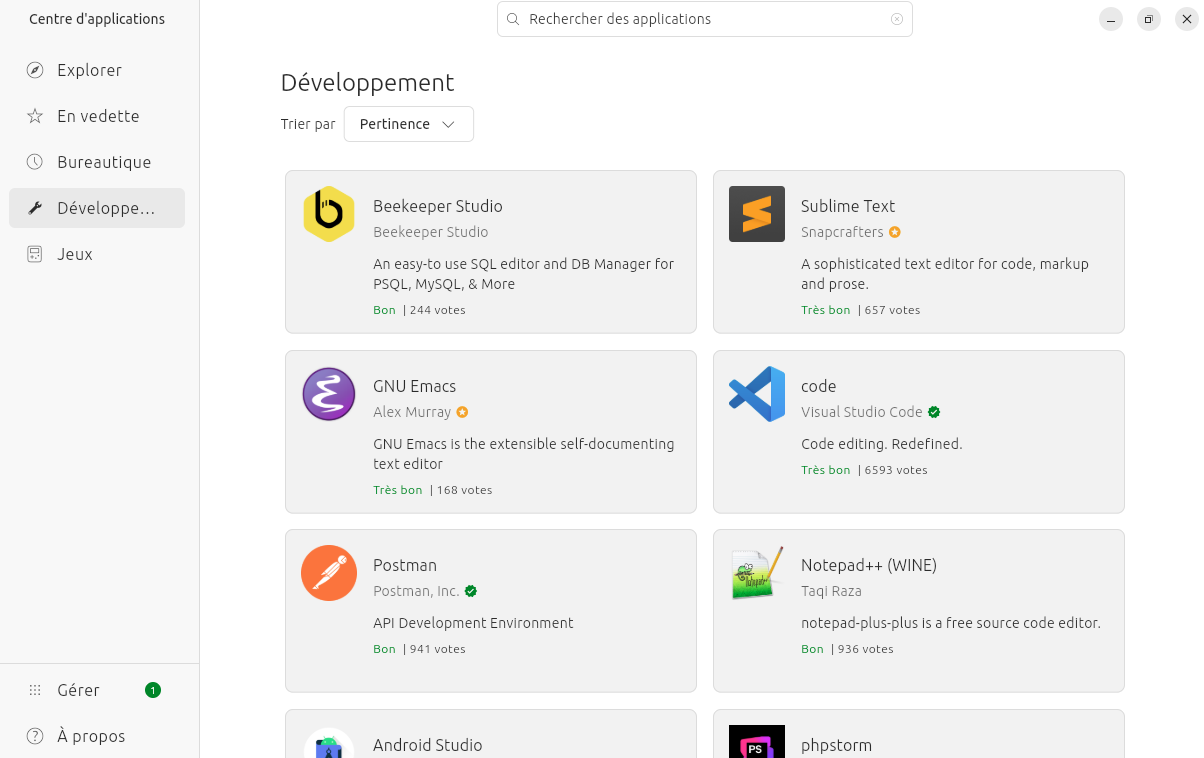 Si vous souhaitez directement rechercher une application particulière en ligne de commande, vous pourrez le faire avec flatpak search <nom_de_l'application>.