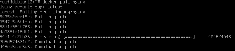 La commande docker pull vous permet de télécharger des images depuis un registre, tel que le Docker Hub. Par exemple, pour télécharger une image de Nginx, vous pouvez utiliser cette commande :