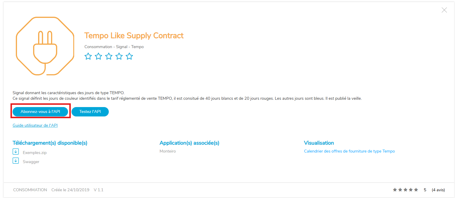 Une fois le compte créer, vous allez rechercher l'API nommée "Tempo Like Supply Contract" et cliquer sur "découvrir l'API" quand vous passé la souris dessus.