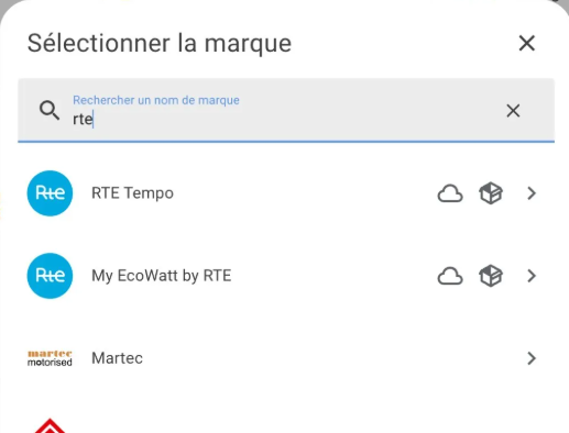 - Recherchez l’intégration « RTE Tempo » puis installez là.