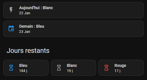 Aujourd'hui : {{ states('sensor.rte_tempo_couleur_actuelle') }}