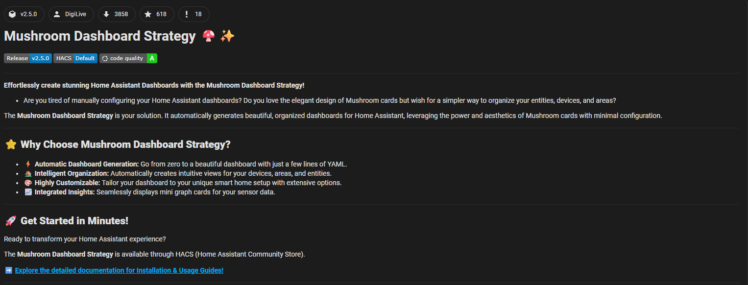 Pour cela, nous utilisons les Mushroom Cards, disponibles via HACS, qui permettent de créer des cartes modernes et entièrement personnalisables.