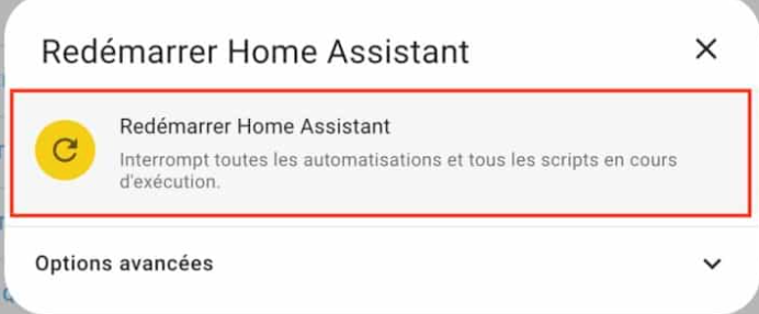 Redémarrer Home Assistant