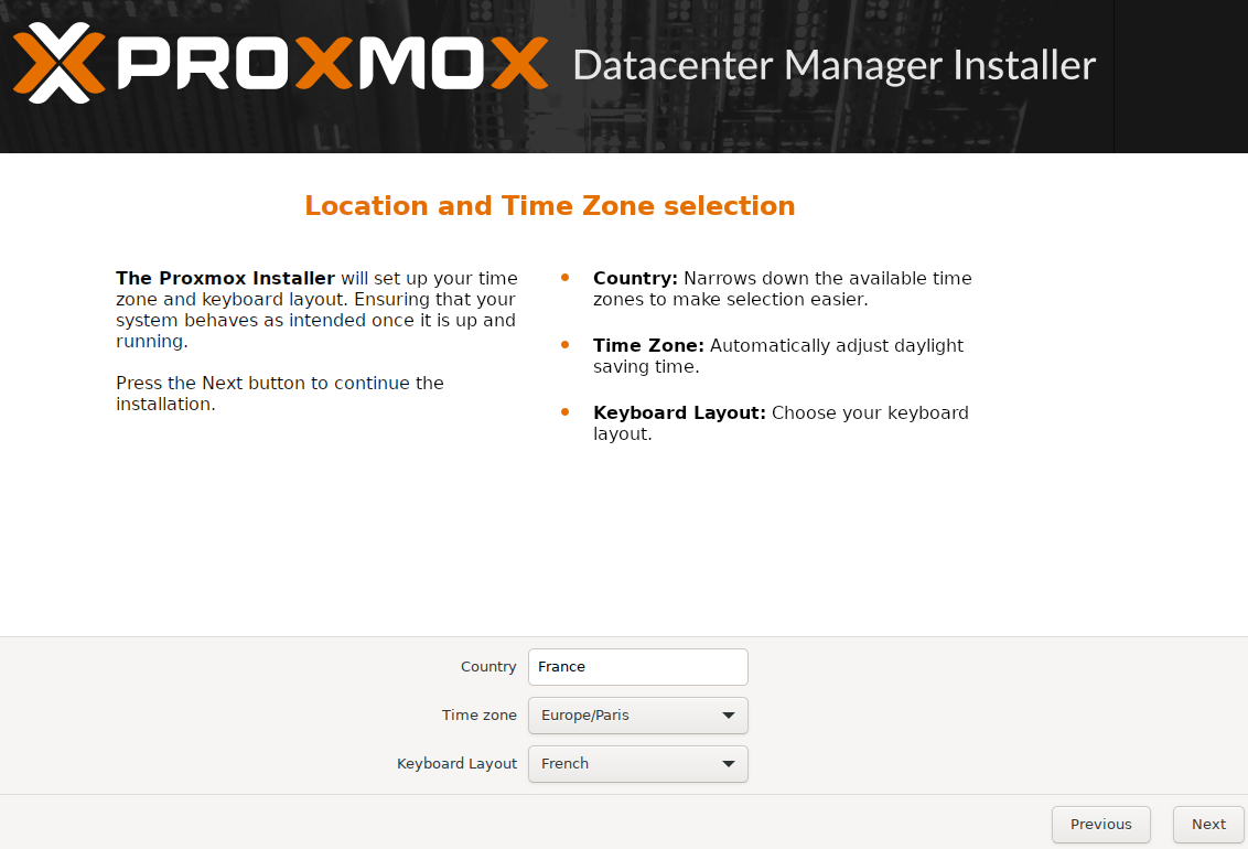 Une fois l’ISO de Proxmox Datacenter Manager téléchargé et la clé bootable créée, il suffit de démarrer le serveur dessus pour lancer l’installation.